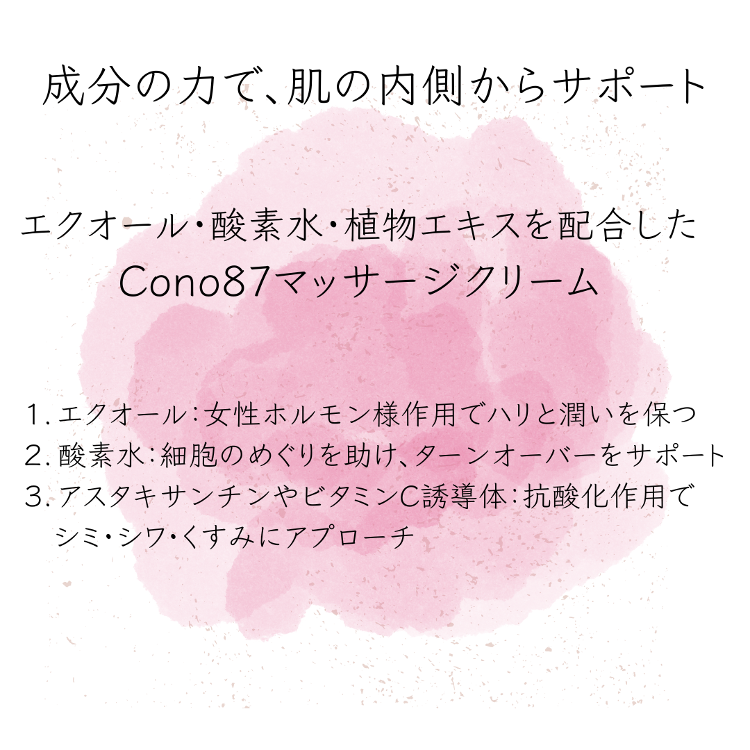 Cono87メソッドは、成分・手技・香りの相乗効果で、 更年期世代に多いお悩みに優しくアプローチします。